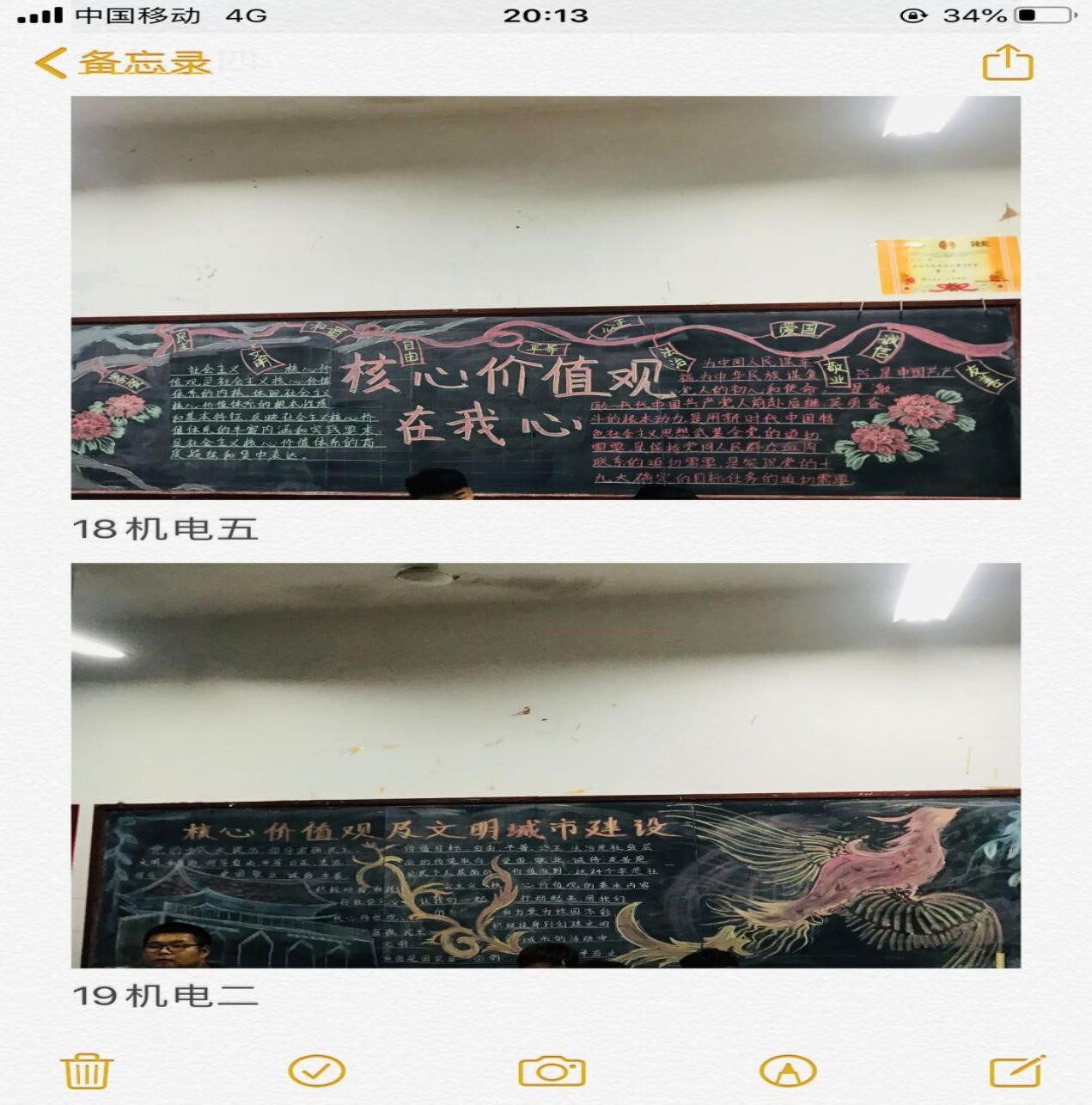 机电工程学院文宣部于2020年9月17日举办了社会主义核心价值观黑板报活动,让各班同学对社会主义核心价值观有了更深入的认识。