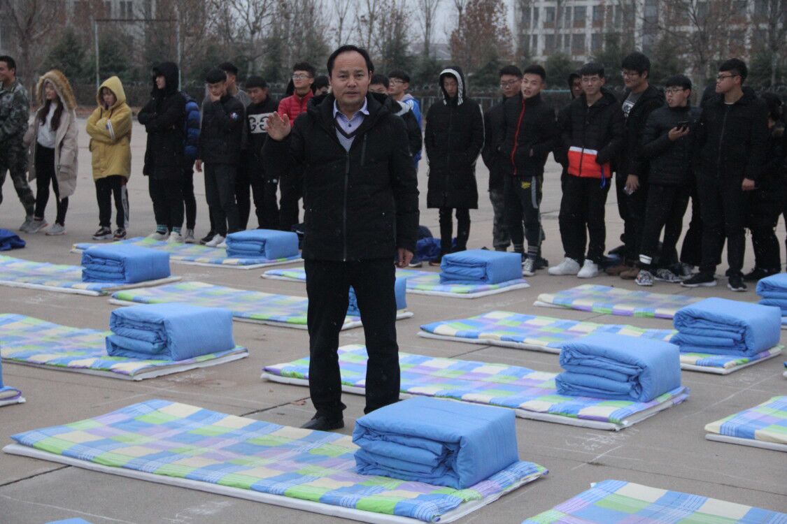 本次比赛参赛人员是机电工程学院17级社联学生会干部,18级干事和班委参加本次比赛,比赛开始前天空飘散着零星雪花,选手们在操场叠被子评委老师在耐心地等待。十分钟很快就过去了