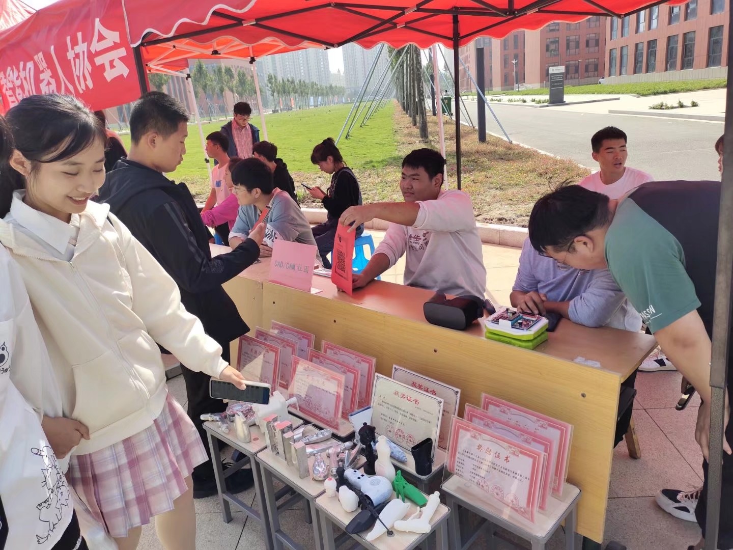 2021年9月29日,beat365中文官方网站社团纳新活动在学校行政综合楼前顺利进行,本次纳新活动在校团委与学院团总支的大力支持,以及社团联合会的全力协助下,规模空前,热闹非凡,甚至连那深秋的寒意也被同学们的热情所冲淡。本次活动beat365官网有智能机器人协会、汽车营销社团、CAD/CAM交流协会、数控交流协会4个专业学习社团参与。