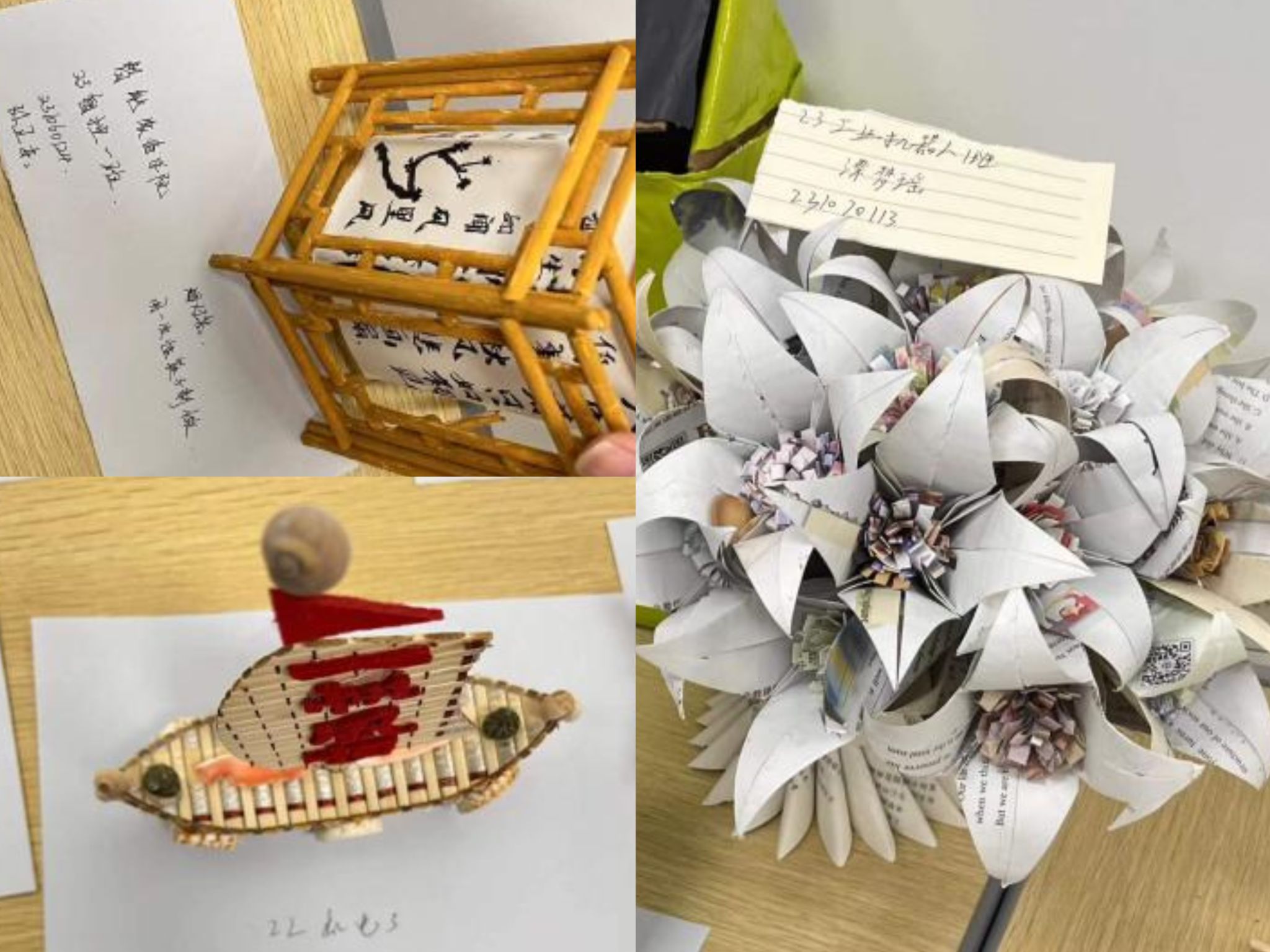 同学们积极报名参与,收集了各种废旧材料,如塑料瓶、易拉罐、纸板等。在参赛过程中,同学们结合废旧物品的特点,展开丰富的想象力,发挥积极向上的创新精神,将废弃物品变为栩栩如生的艺术品,如用废旧塑料瓶制作的灯笼,一次性筷子做的帆船等。活动中使用的环保材料和创意来源广泛,用途多样。