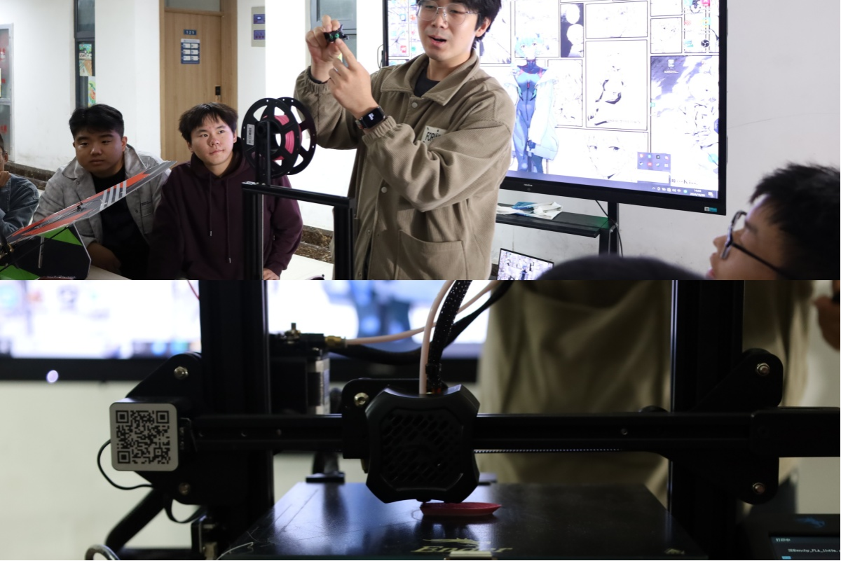 活动上,学院方玉玺老师指导的创新创意工作室利用社区活动区域,在3D打印技术推广、实操演示方面进行了教学展示;学院马兴龙老师利用课余时间组装了一台机器人,现场开设了一堂机器人的编程、移动端控制与实操课,为同学们带来了一场现实与科技的碰撞。