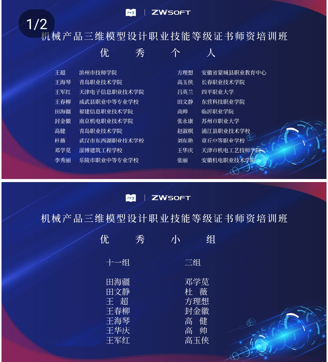 通过此次培训,两位老师收获颇丰,不仅为以后推进“1+x证书”做好了充分的准备还获得了“优秀小组”和“优秀学员”荣誉称号。