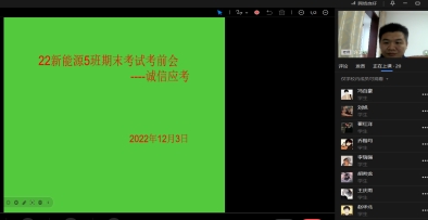 为了进一步加强同学们的考风考纪,构建诚信校园,保证期末考试的顺利进行,倡导同学们“端正考风、严肃考纪、文明答题、诚信应考”。2022年12月,beat365中文官方网站21级辅导员以及22级班主任陆续开展线上班会,以正考风考纪。