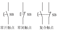 对于常开触头(a),在按钮未被按下前,电路是断开的,按下按钮后,常开触头被连通,电路也被接通;对于常闭触头(b),在按钮未被按下前,触头是闭合的,按下按钮后,触头被断开,电路也被分断。由于控制电路工作的需要,一只按钮还可带有多对同时动作的触头(c)