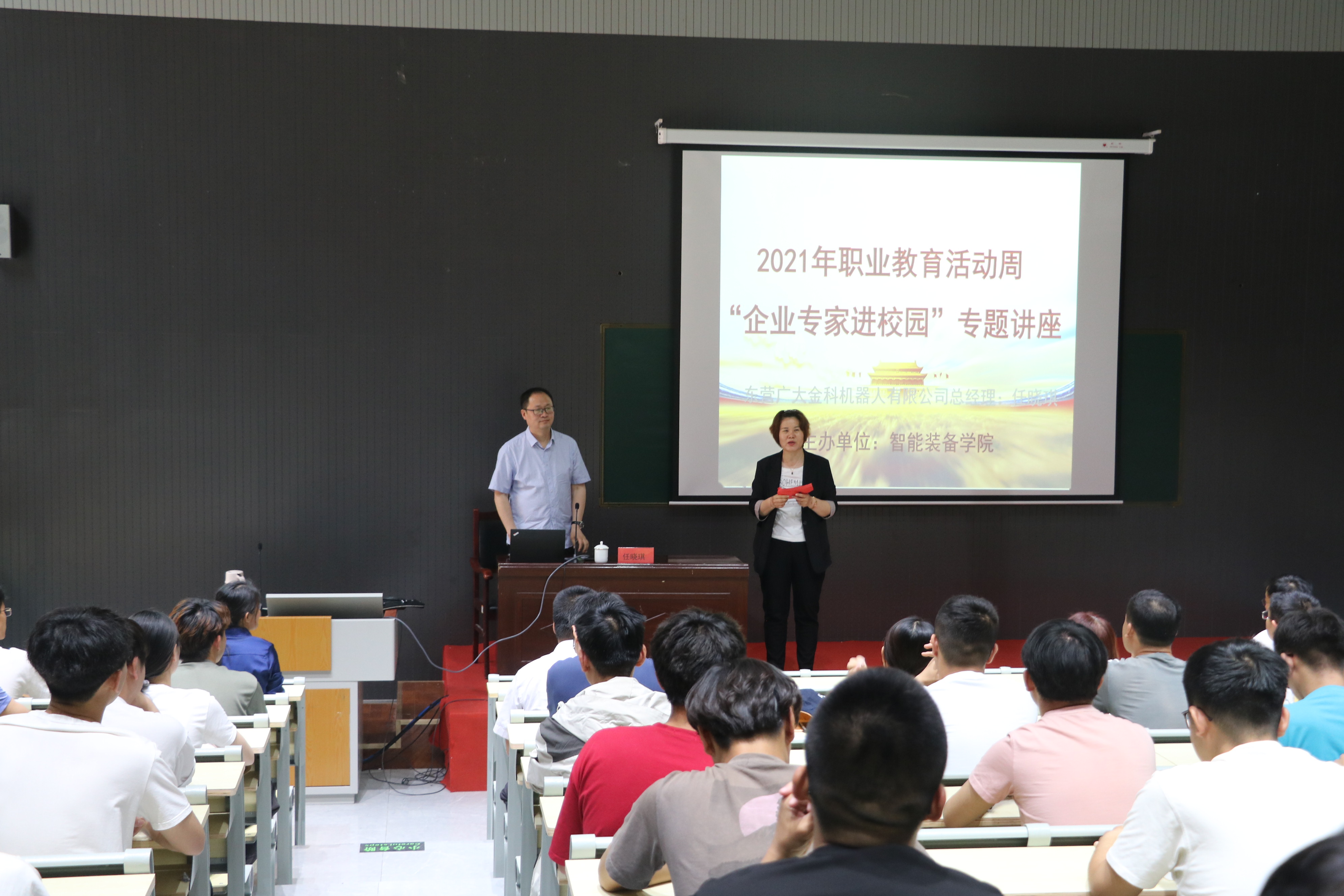 在建党一百周年之际,beat365中文官方网站举办2021年职业教育活动周“企业专家校园活动”。5月26日,特别邀请企业专家任晓琪总经理来校做了关于“汽车轻量化技术及先进成形工艺的国产化历程”的讲座。