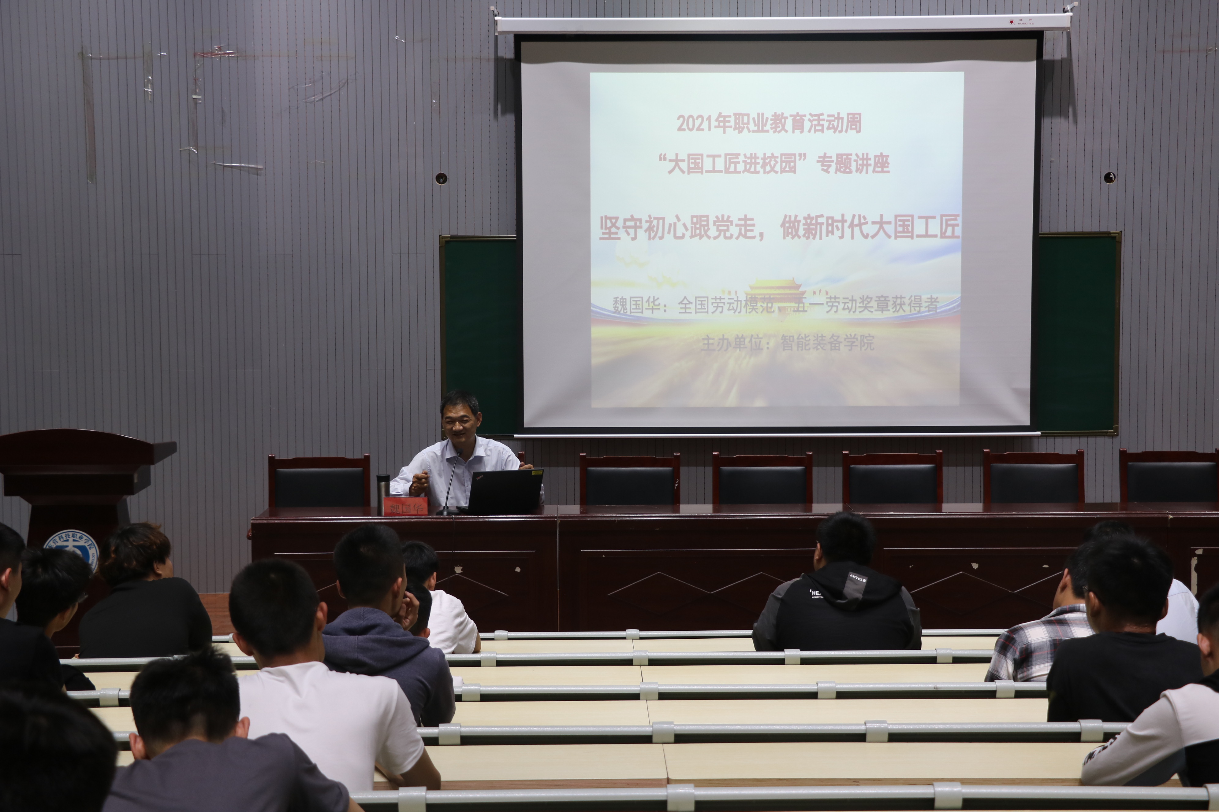 6月1日,beat365中文官方网站邀请“全国劳模,五一劳动奖章获得者”魏国华给师生作“坚守初心跟党走、做新时代大国工匠”的主题报告会。
